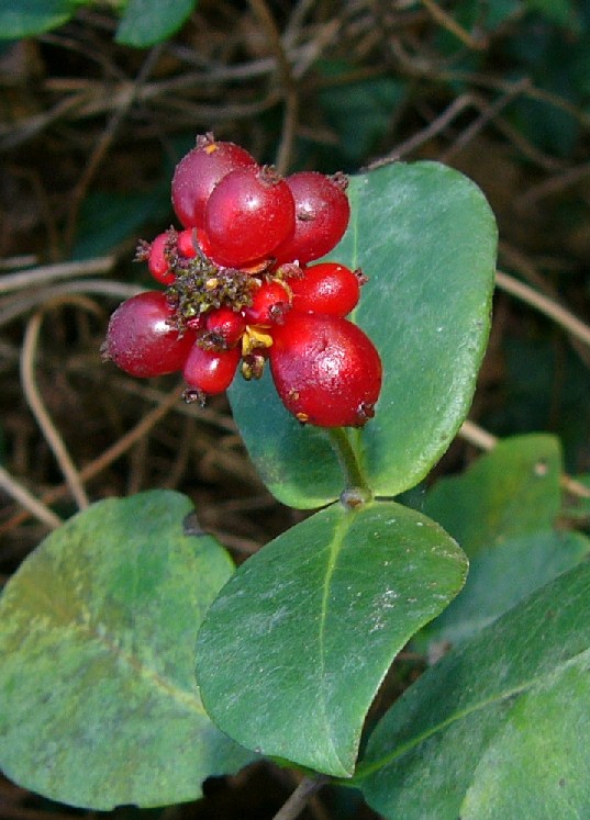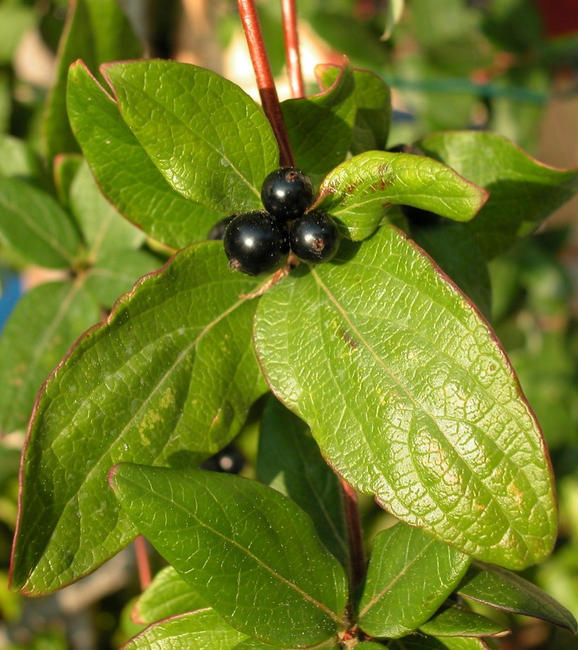 2 Blüten paarweise, oft jedoch am Triebende gehäuft, Beeren schwarzblau