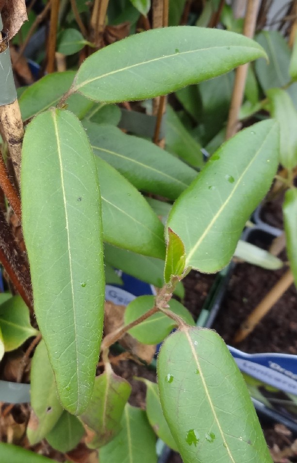 Blätter 3 - 9 cm lang, 2 - 5 cm breit, gegenständig, elliptisch,