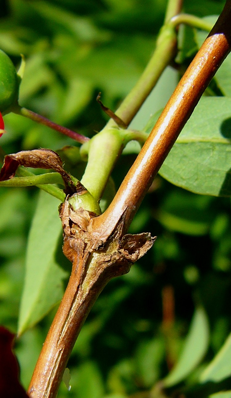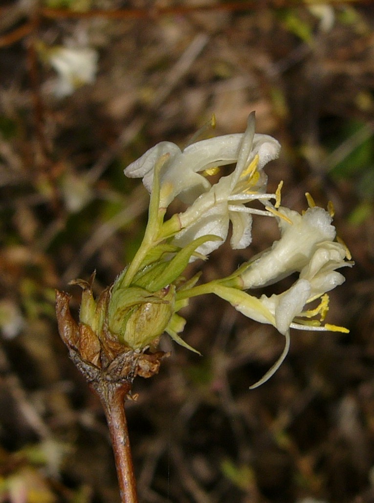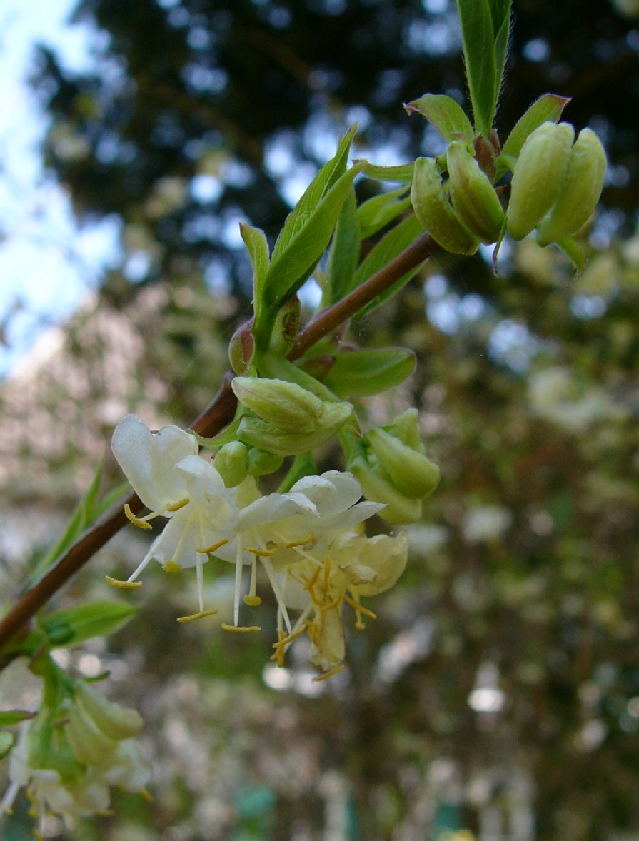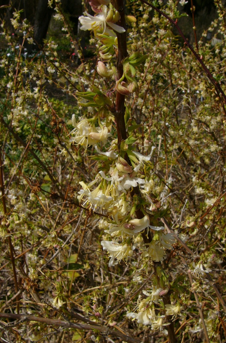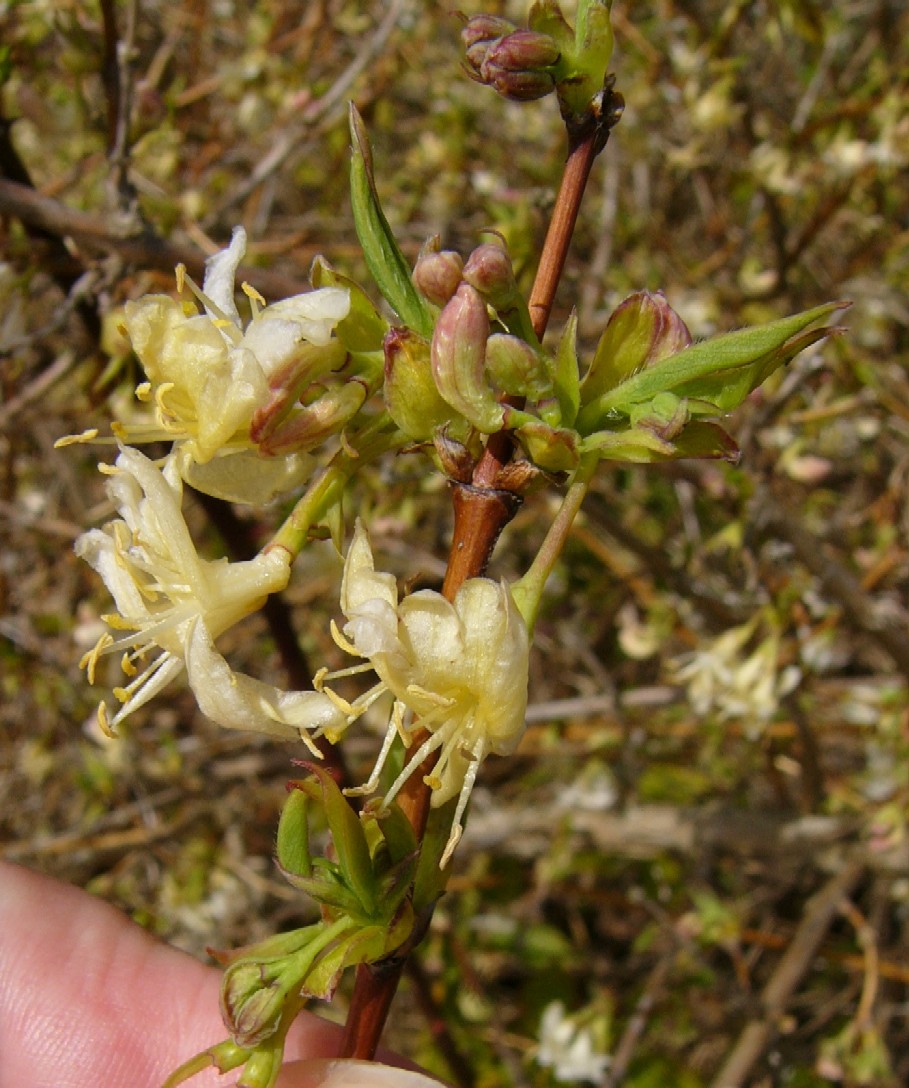 Heckenkirschen mit dorsiventralen Blüten, zur Blütezeit fast laublos, Fruchtknoten nur am Grund verwachsen