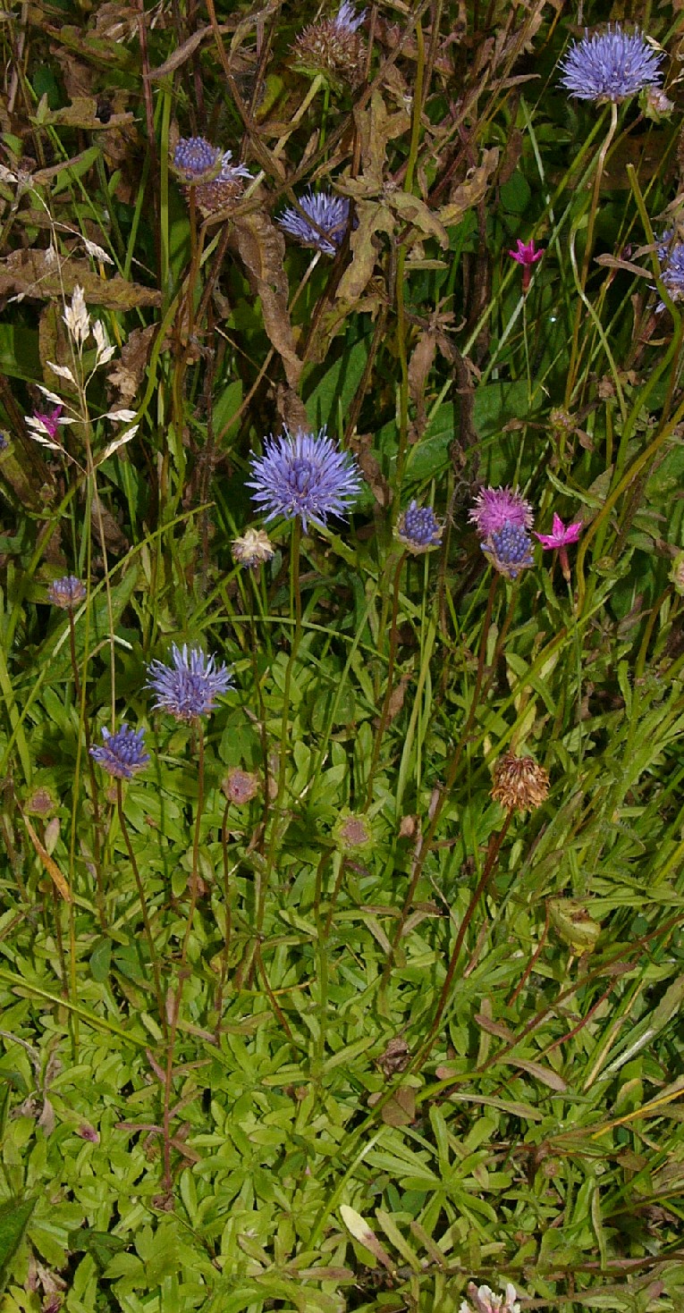 halbkugelig oder kugelig, Blüten blau, mit 5 linealischen, gleichartigen Kronzipfeln > Sandknöpfchen (Jasione)