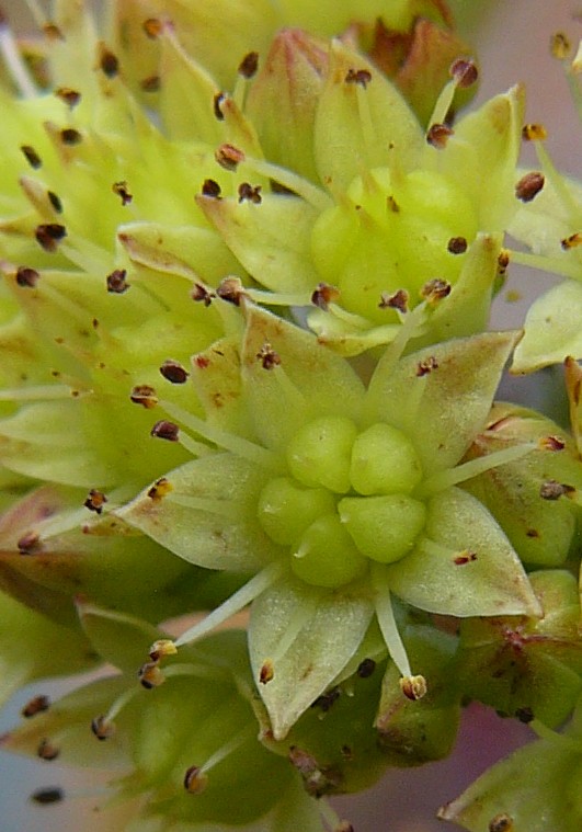 Blätter fleischig Blüten mit 5 freien Fruchtblättern, 5 Griffel > Dickblattgewächse (Crassulaceae)