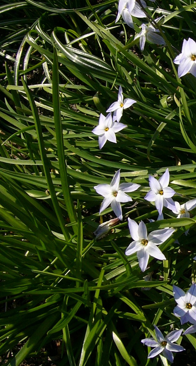 Blüten einzeln, selten zu 2, hellblau, sternförmig,