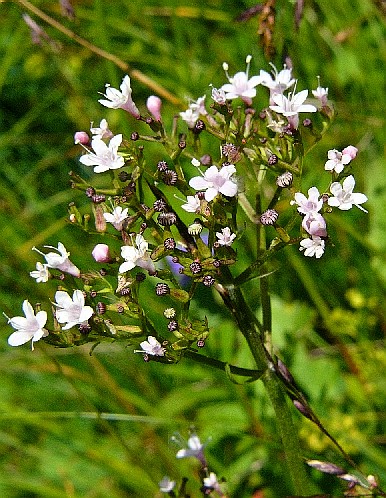 Blüten in Scheindolden d.h. Doldenstrahlen entspringen nicht einem Punkt > Blüten in Scheindolden