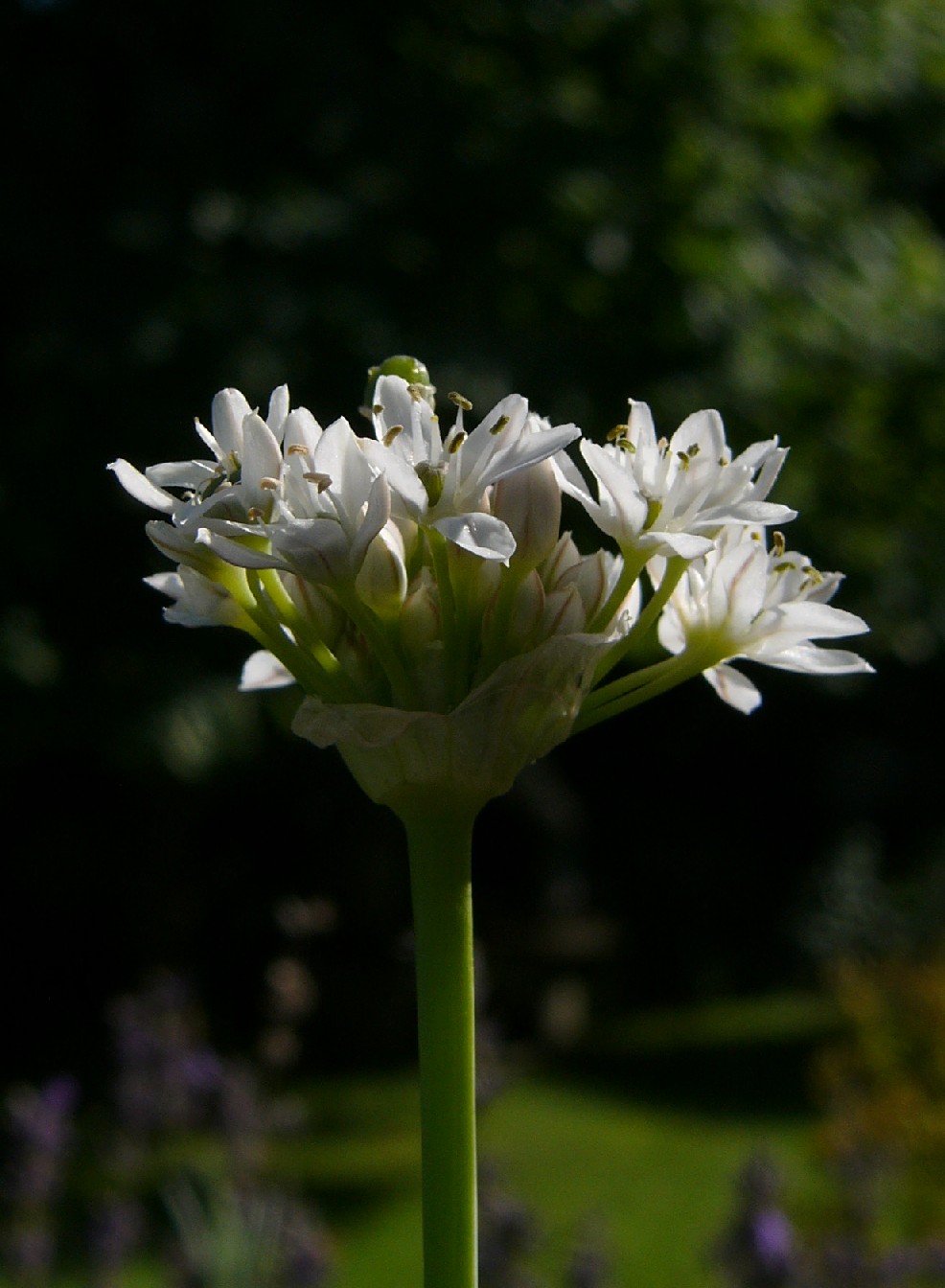 Allium - Blütenstand ohne Bulbillen, Blüten weiß, sternförmig oder weitglockig, Perigonblätter mit 1 Streifen, Staubblätter kürzer als die Perigonblätter, Stängel rund, Blätter 2 - 10 mm breit