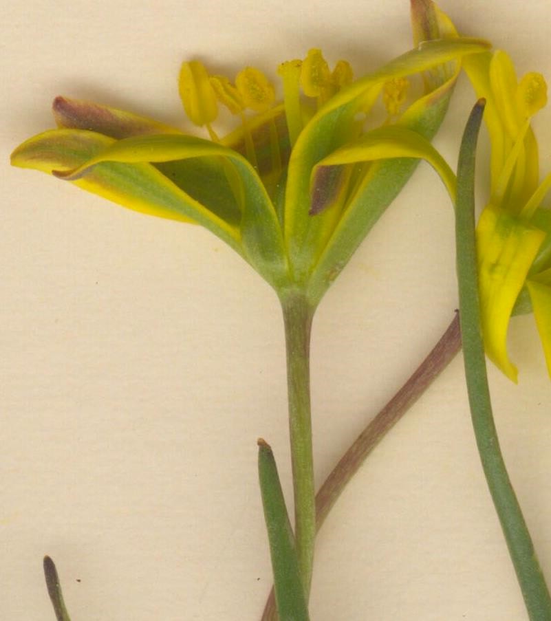 Gagea - Blüten gelb, Hüllblätter des Blütenstandes