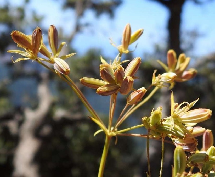 Seltener Endemit in Sizilien Dolden mit 5 - 7 Hüllblättern Wurzelstock dicht mit den Resten vertrockneter Blätter bedeckt > 1
