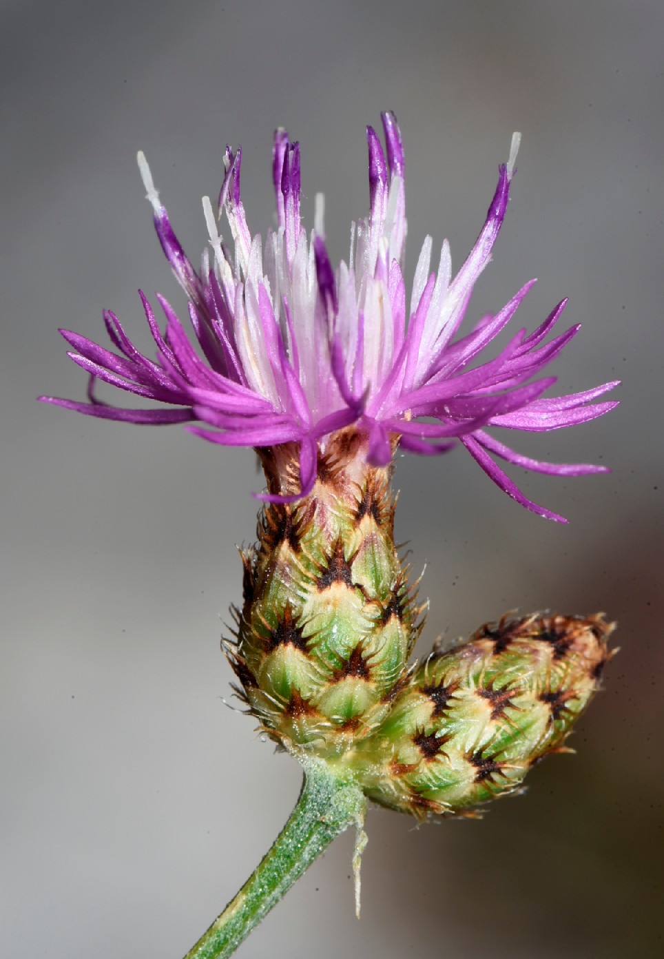 2 Blätter weißfilzig oder dicht spinnwenig behaart, Anhängsel schwarz, Enddorn der Hüllblattanhängsel ca. 0,5 mm lang
