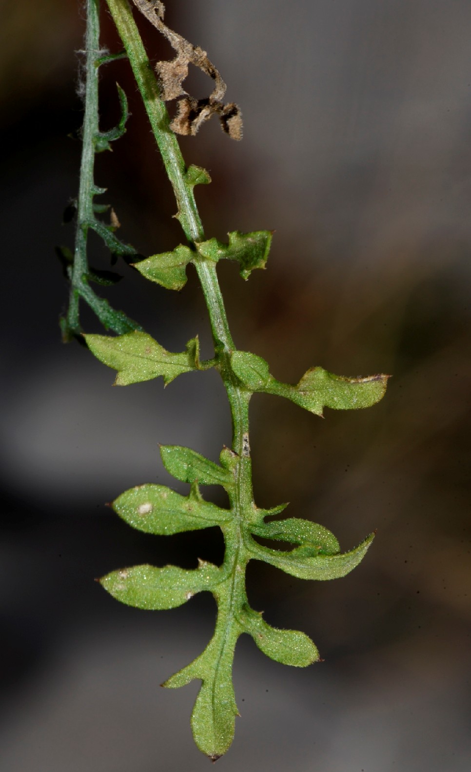 fiederteilig, Untere Blätter fiederschnittig oder leierförmig, Fiederabschnitte eilänglich, rau, beiderseits schwach spinnwebig behaart