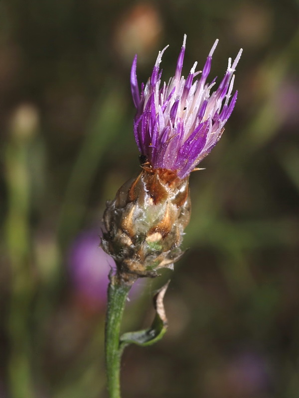 3 Obere Stängelblätter linealisch, filzig behaart, Hülle 12- 15 mm im Durchmesser, kugelig bis eiförmig, am Grund abgerundet