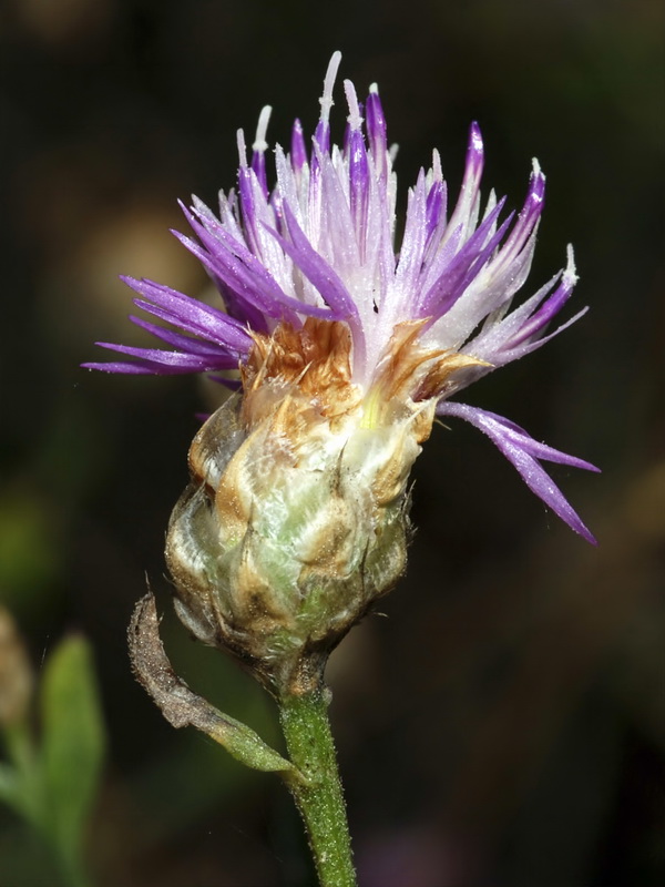 Huelva, Sevilla, Obere Stängelblätter linealisch, filzig behaart Hülle 12- 15 mm im Durchmesser, kugelig bis eiförmig, am Grund abgerundet > 3