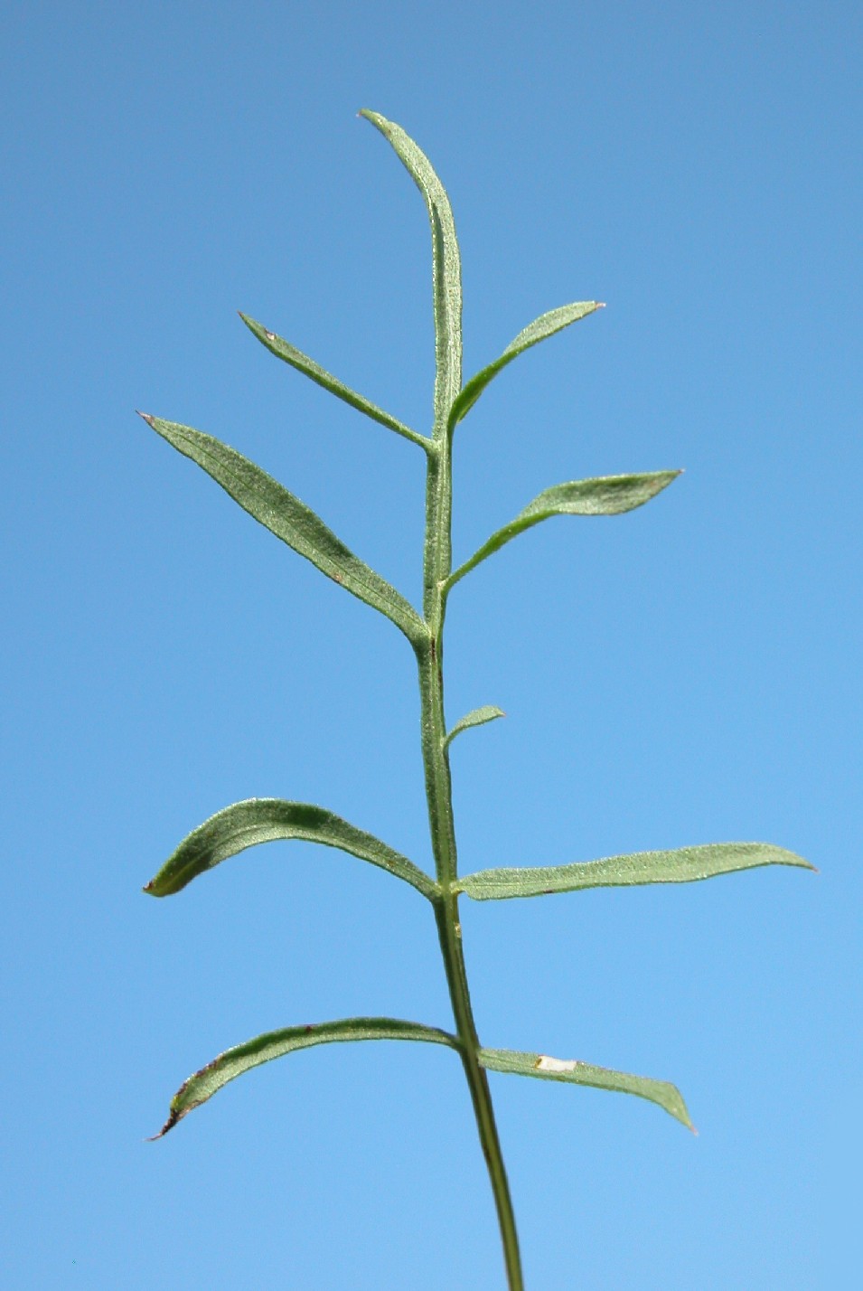 Fiederabschnitte der mittleren und unteren Blätter linealisch, 10 - 45 mm lang, 1 - 2 mm breit