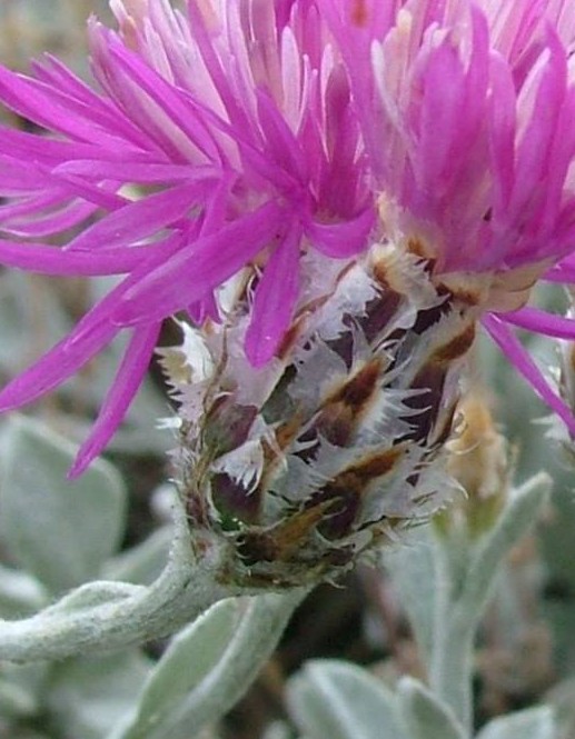 Pflanze weißfilzig Anhängsel häutig, tief gefranst > Centaurea pseudocadmea