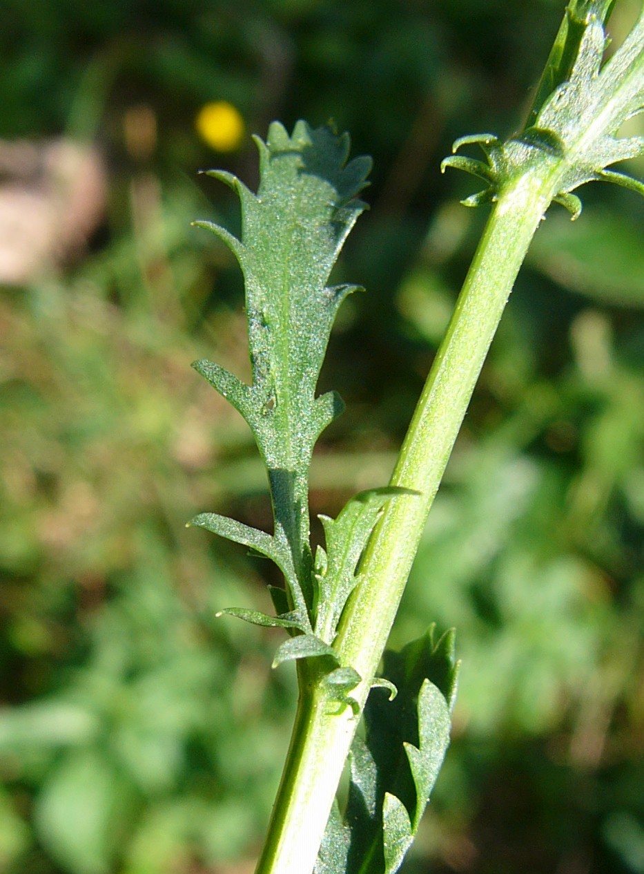 3 Blätter zerschlitzt erscheinend, auch im vorderen Teil eingeschnitten, mit langen Zähnen