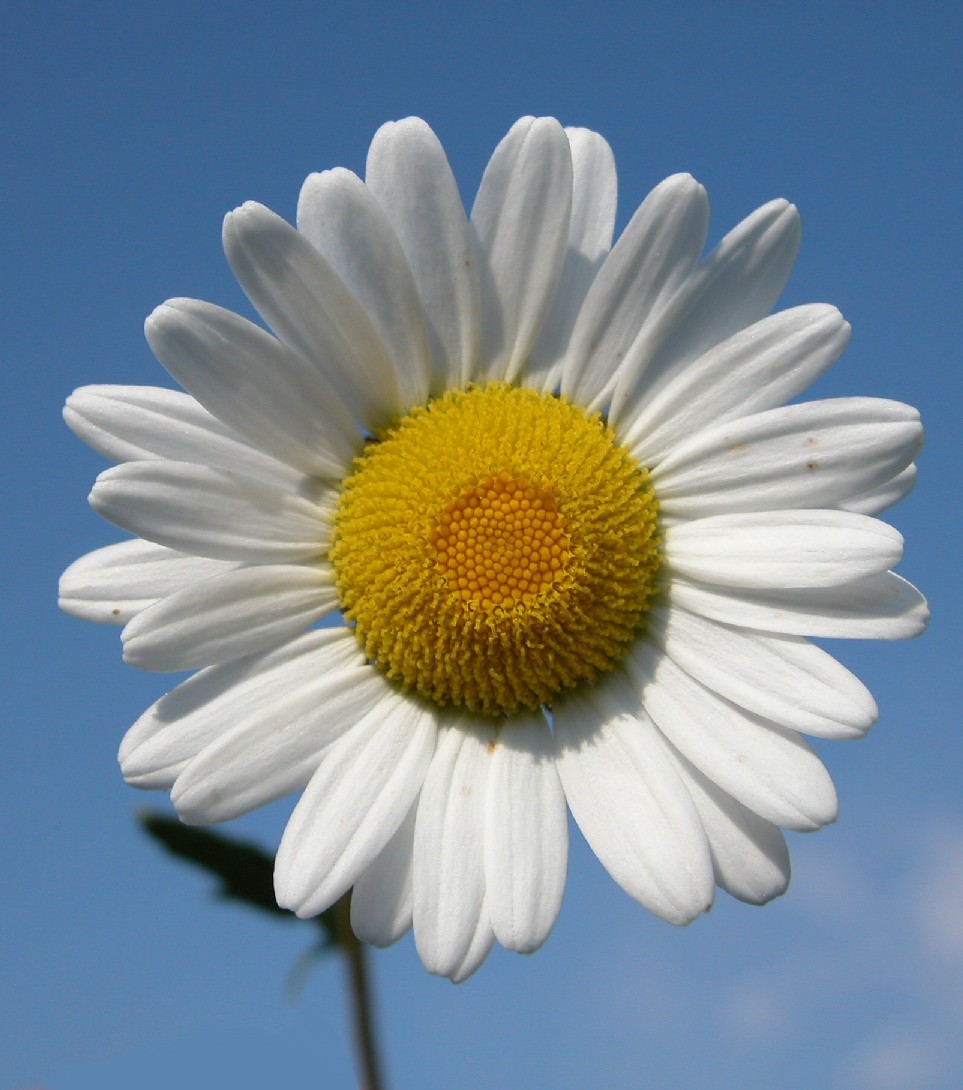 Köpfchen 3 - 4 cm im Durchmesser, mit weißen Zungenblüten und vielen gelben Röhrenblüten