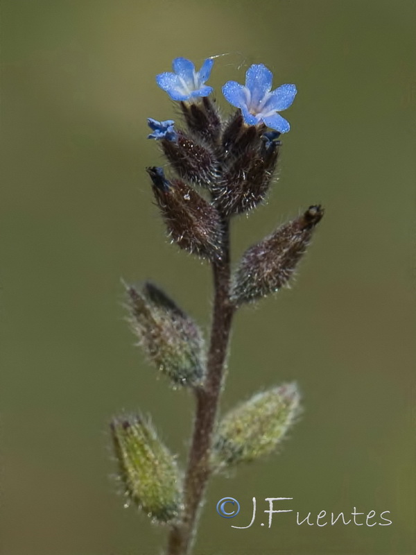 Myosotis - Blüten blau, klein, +/- trichterförmig, Kelch mit Hakenhaaren, Blütenstandsachse abstehend behaart