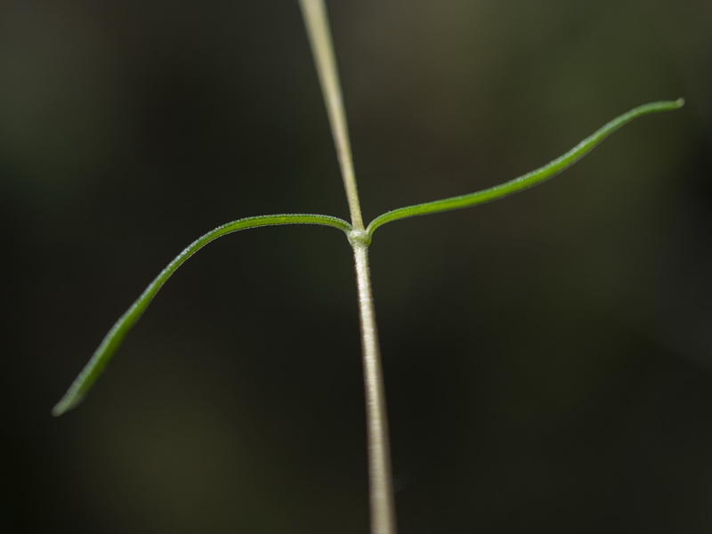 Stängel drüsenlos behaart, Blätter 5 - 20 mm lang, 0,7 - 1,5 mm breit, linealisch, am Rand umgerollt, mit undeutlichem Mittelnerv, behaart