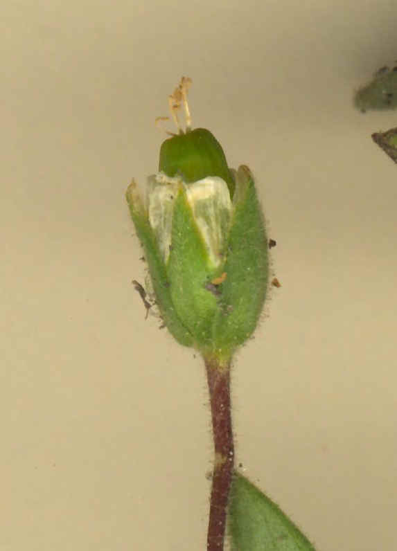 Blütenstiele abstehend behaart, bis 6 mal so lang wie der Kelch und meist länger als der Stängel, Kelchblätter 5 - 7 mm lang, schmal hautrandig, behaart