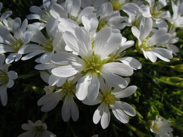 Blüten weiß, 5 Kronblätter, 5 Kelchblätter, 5 Griffel, 10 Staubblätter