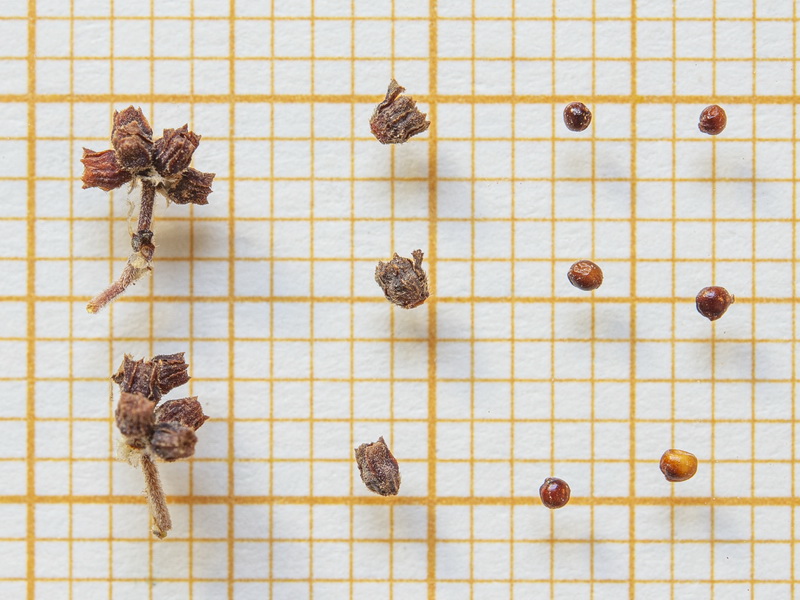 Blütenknäuel 3 - 8 mm, Kelchblätter geschwollen, am Grund mit hakenförmigen Haaren