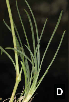 Stängel mit 3 - 4 Paar Blätter, die nach oben kleiner werden Stängel im oberen Teil kahl, im unteren Teil mehlig- papillös, nur die Nodien drüsig Blätter schmal-linealisch, 15 - 60 mm lang, 0,3 -