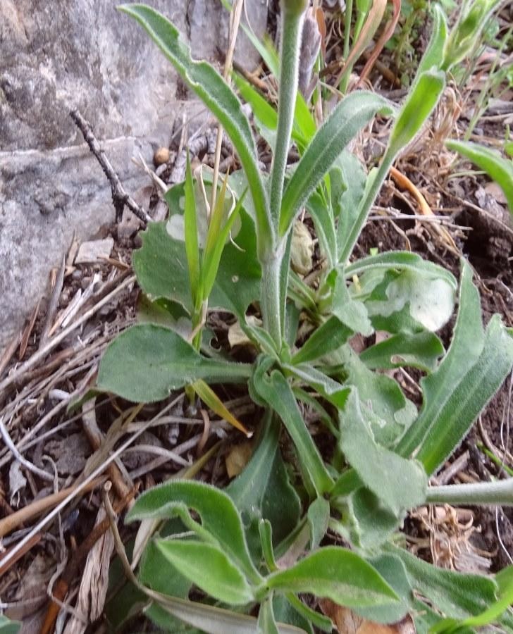 Grundblätter rosettig, spatelförmig, +/- spitz, dicht samtig- filzig behaart