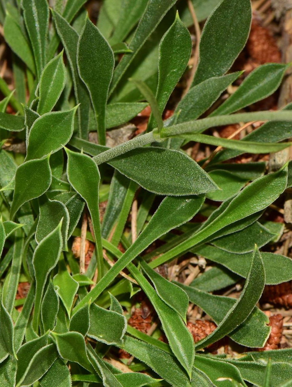 Stängel im unteren Teil kurzhaarig, Grundblätter spatelig, oberseits auf der Fläche kahl, unterseits kahl oder behaart, am Rand, auf Blattstiel und Blattscheide mit kurzen oder langen, Haaren