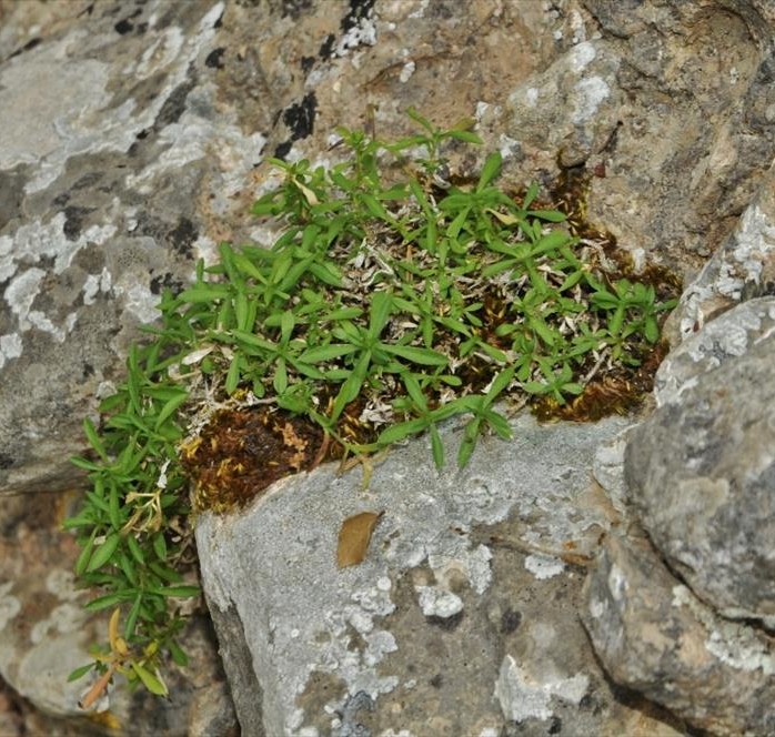 Kloster Mega Spileon, Nordpeloponnes Stängel 5 - 10 cm lang, niederliegend oder hängend Blätter beiderseits kurz rauhaarig, 2 mm breit > 1