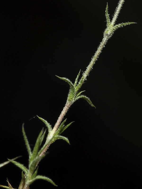 Stängel im oberen Teil drüsig behaart, im mittleren Teil mit kurzen drüsenlosen Haaren, im unteren Teil verkahlend, obere Blätter tragblattähnlich, +/- weit auseinander stehend