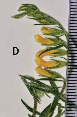 biegsam, Triebe und Blätter angedrückt seidig behaart Blüten zu 4 - 10 in +/- lockeren, einseitswändigen Trauben > 2