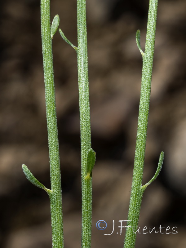 Junge Zweige angedrückt seidig behaart, mit 12 - 13 Rippen, ältere Zweige verkahlend, dornig, Blätter wechselständig, einfach, ungeteilt, Blattspreite 2 - 9 mm lang, 1 -2 mm breit, eiförmig, beiderseits seidenhaarig, mit breitem Pulvinus, Pulvinus ohne Dornen