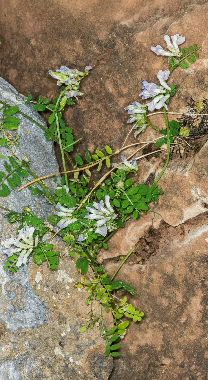Kelch 4 - 6 mm lang abstehend behaart, Kelchzähne weiß bewimpert, kürzer als die Kelchröhre Hülsen seitlich zusammengedrückt, kahl, mit 6 - 8 Samen Blätter mit 3 - 6 Fiederpaaren, Nebenblätter klein (5 mm), ungeteilt, ganzrandig, am Grund halbpfeilförmig