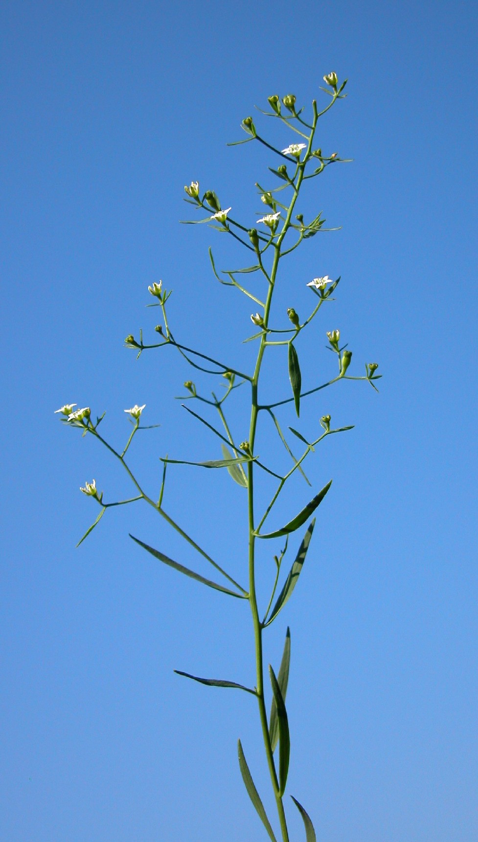 Thesium - Pflanze kahl, Blüten mit 5 Perigonzipfeln, von 3 Hochblättern umgeben, Blätter schmal, meist 1- nervig,