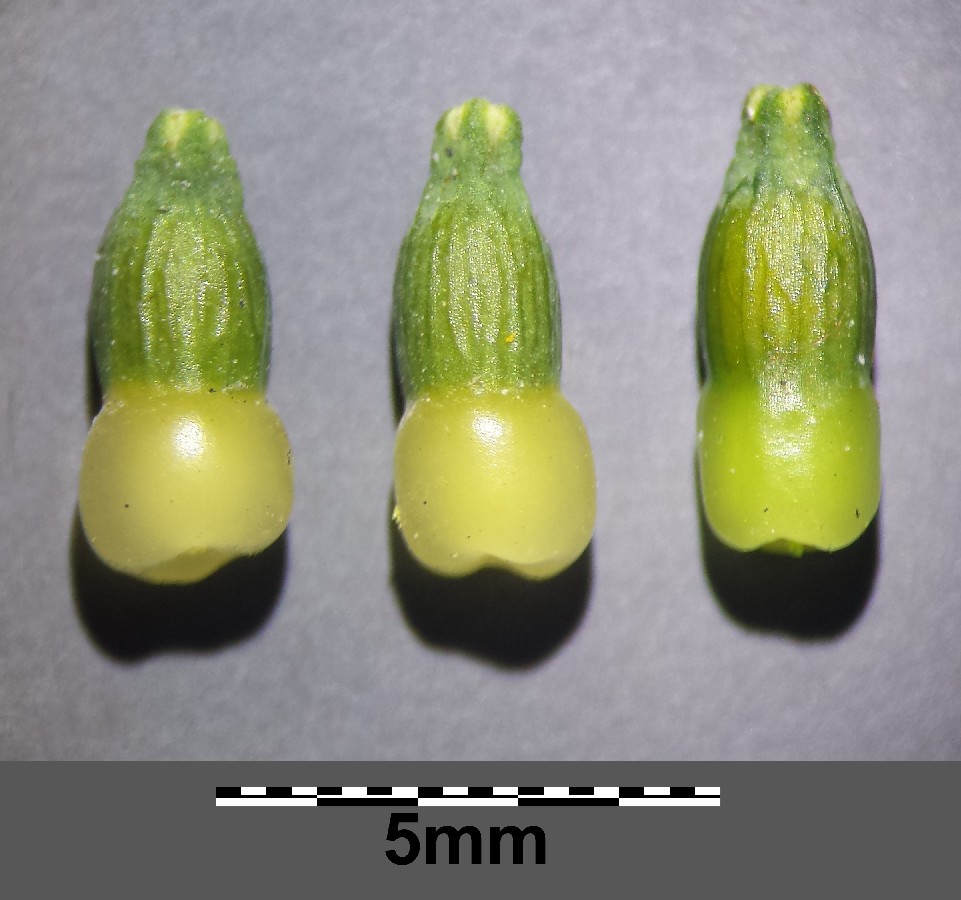5 Staubblätter, Narbe kopfig, jede Blüte mit 3 Hochblättern