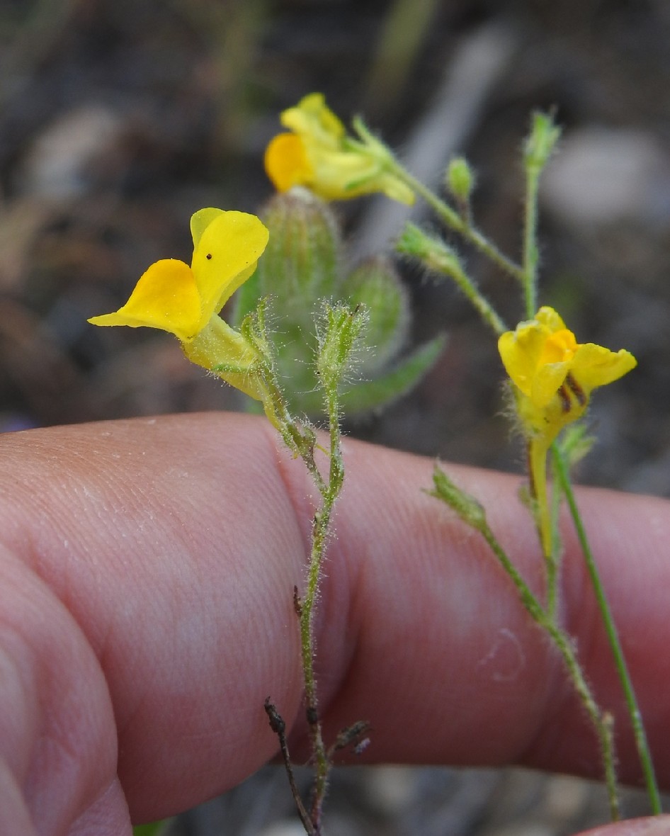 Blütenstiele 5 - 8 mm lang, drüsig, der Achse nicht angedrückt, Tragblätter 2 - 3 mm lang, kürzer als die Blütenstiele, Kelch drüsig, mit +/- gleichen Kelchblättern, Kelchblätter linealisch, 2,5 mm lang, 0,8 mm breit