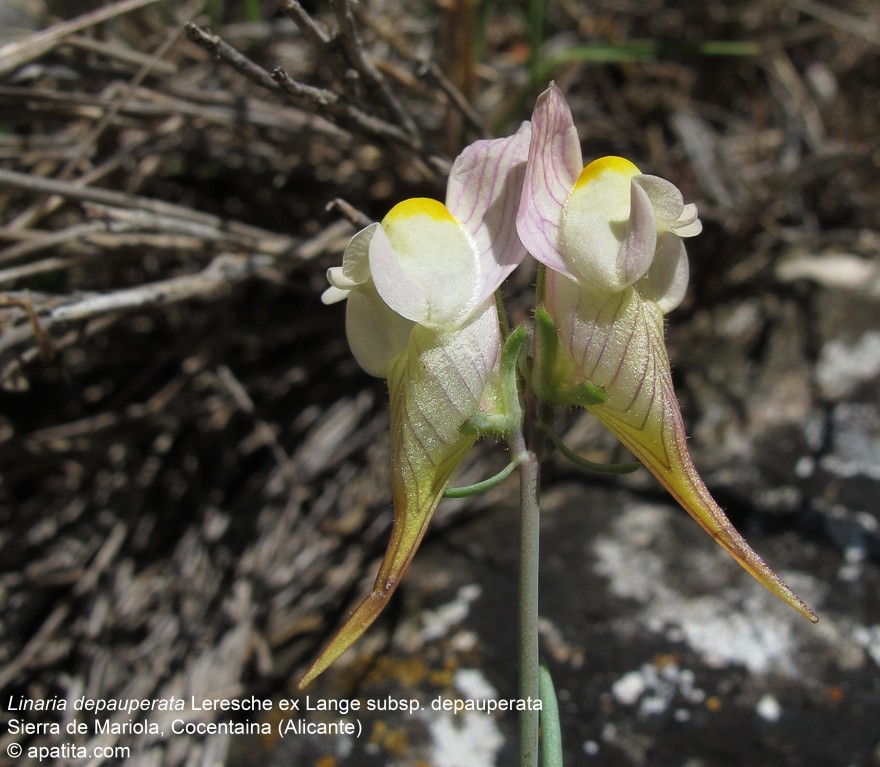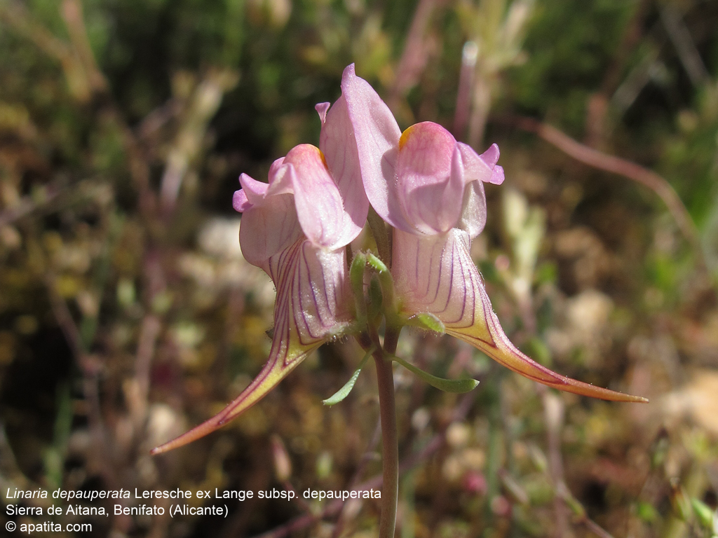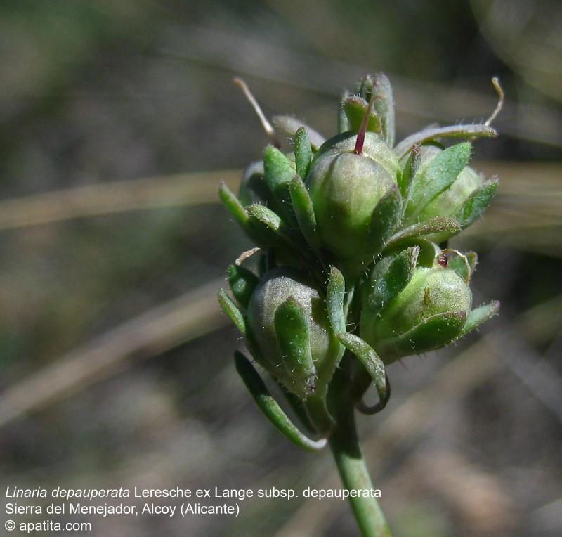 Gaumen gelb, Kelch drüsig, mit 0,8 mm langen Drüsenhaaren, 5 ungleiche, spatelförmige Kelchblätter, obere Kelchblätter 3 - 7 mm lang, 1 mm breit, untere Kelchblätter 3 - 5 mm lang, 1 - 2 mm breit