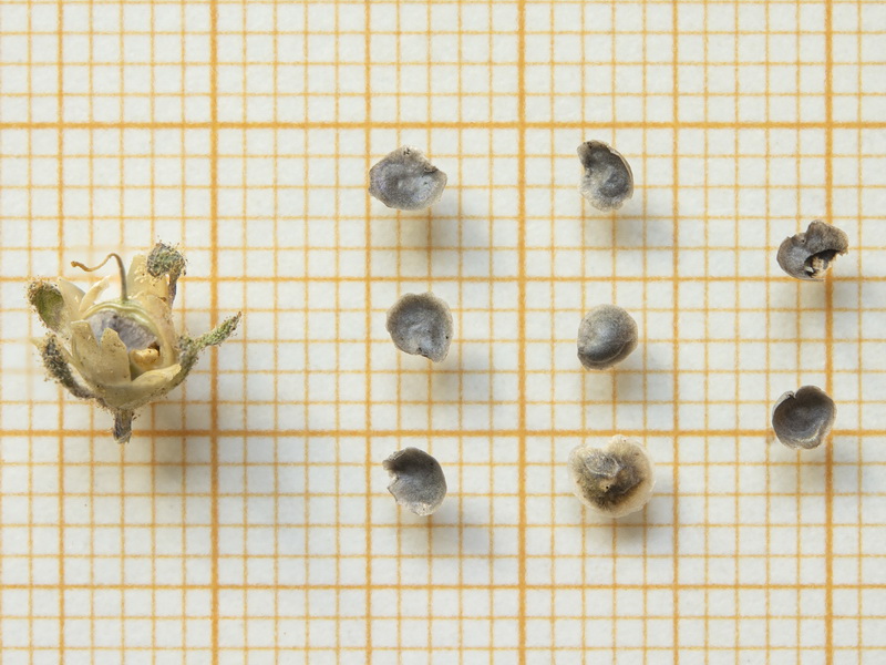 Kapsel kugelig, 5 - 8 mm im Durchmesser, kahl oder drüsig behaart