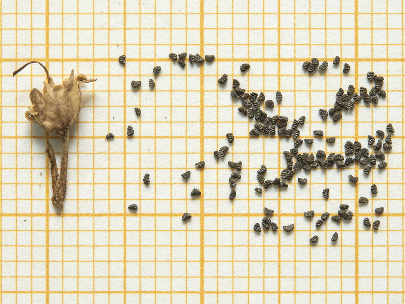 Samen nicht geflügelt, 0,5 - 0,7 mm lang, birnen- oder nierenförmig, grauschwarz, gefurcht