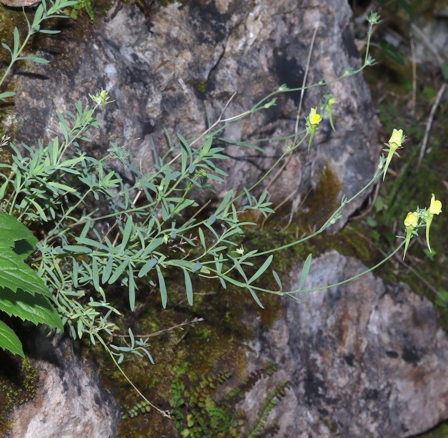 Linaria - Blüten überwiegend gelb, Blätter kahl, lanzettlich oder elliptisch, bis 7 mm breit - Verbreitung: Portugal, Spanien -