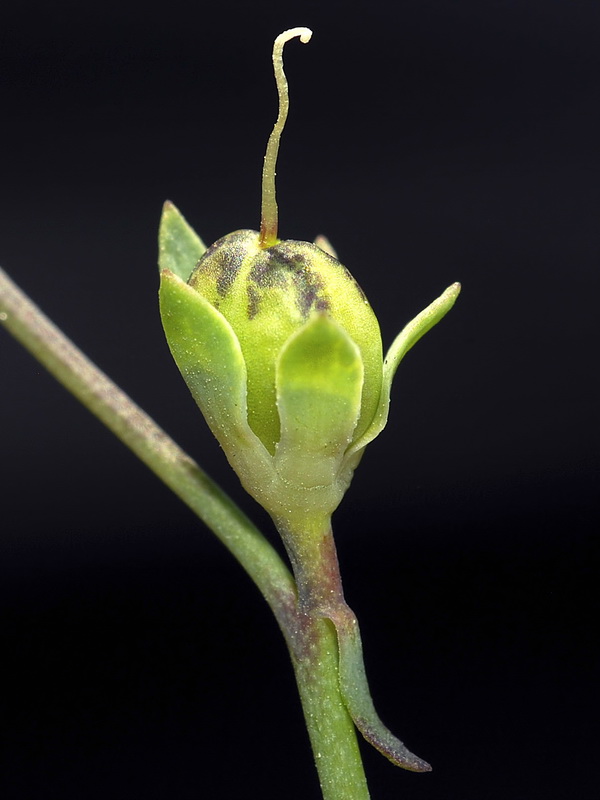 Blütenstiele 0,5 - 2,5 mm lang, kahl, Tragblätter 2 - 8 mm lang, länger als die Blütenstiele, Kelch kahl, mit +/- gleichen Kelchblättern, Kelchblätter 3 - 5 mm lang, 0,5 - 1 mm breit