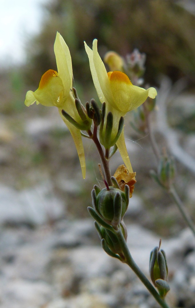 | Samen ungeflügelt Blüten gelb, Sporn bis 15 mm lang, meist länger als der Rest der Blüte > 1