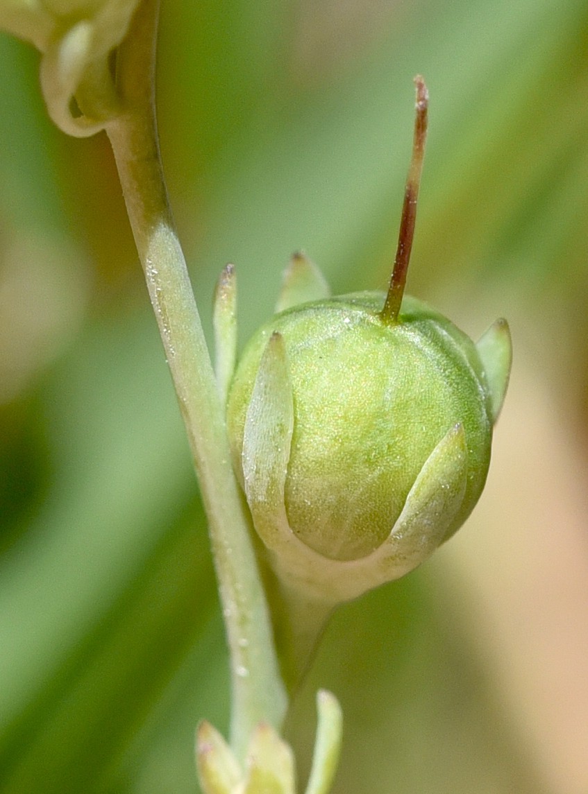 Kapsel kugelig, 4 mm im Durchmesser, kahl oder spärlich drüsig behaart