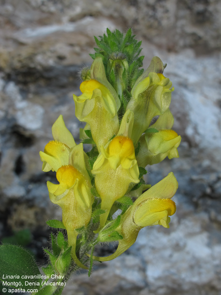 Blütenstiele 1 - 3 mm lang, drüsig behaart, Tragblätter linealisch- lanzettlich, 5 - 7 mm lang, 1 - 3 mm breit, Kelchblätter spatelig, ungleich groß, drüsig behaart, die oberen 5 - 8 mm lang, 1 - 1,5 mm breit, die unteren 6 - 7 mm lang, 1 - 2 mm breit