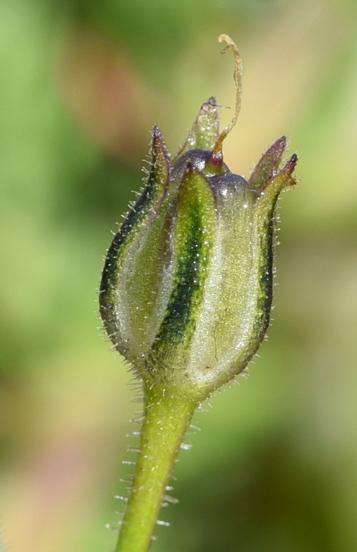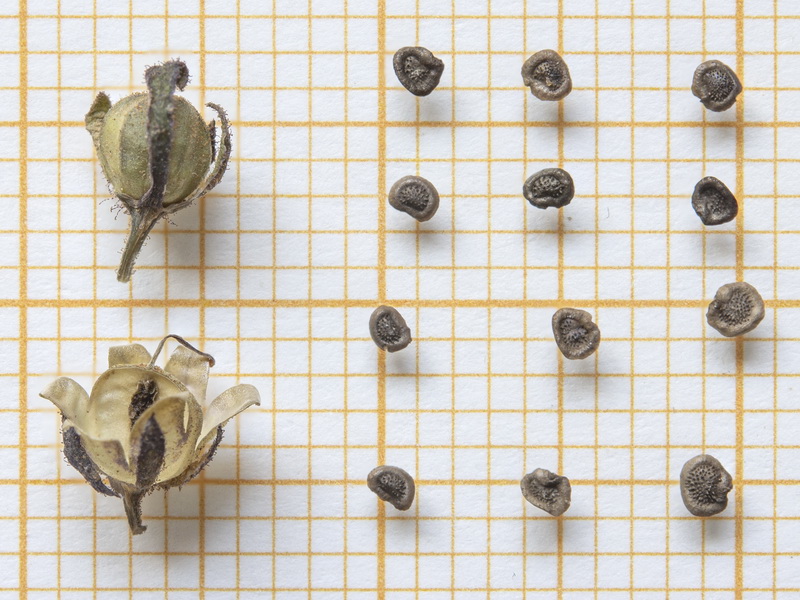Kapsel eikugelig, 3 - 5 mm lang, drüsig behaart, von den