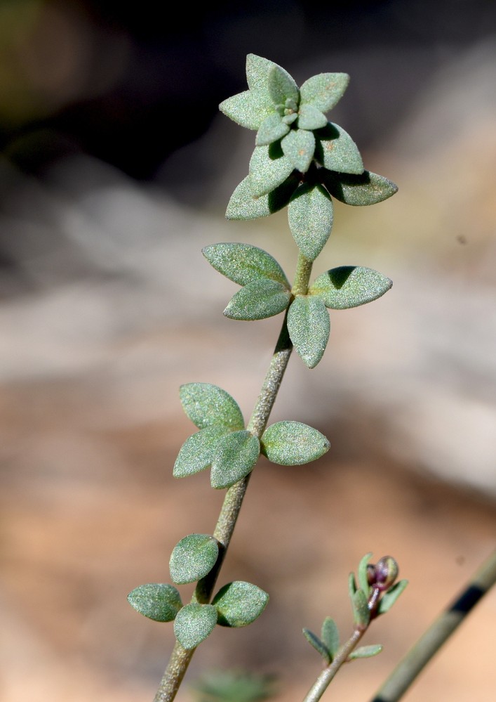 Blätter der sterilen Sprosse eiförmig, 2 - 8 mm lang, 1 - 3 mm breit, quirlig