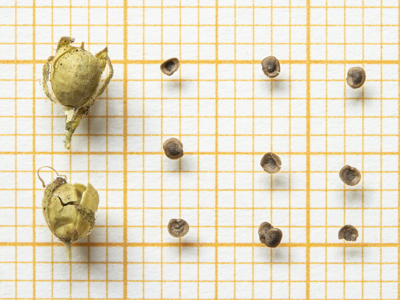 Kapsel eikugelig, 3 - 5 mm lang, drüsig behaart, von den drüsigen Kelchblättern umgeben