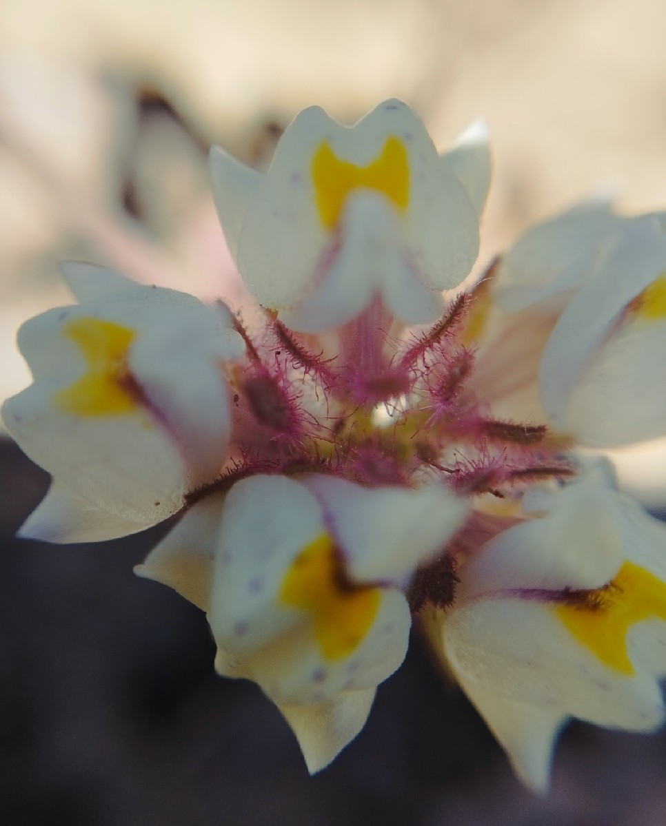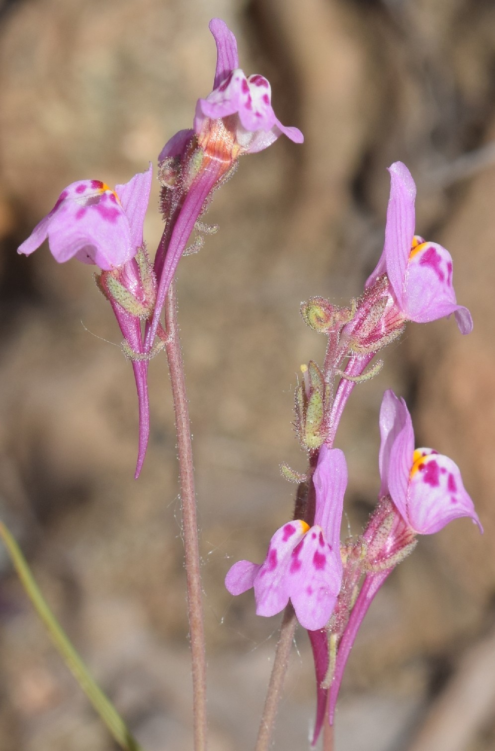 Linaria - Blüten weiß, mit oder ohne Punkte, Kelch drüsig, Stängel und Blätter behaart