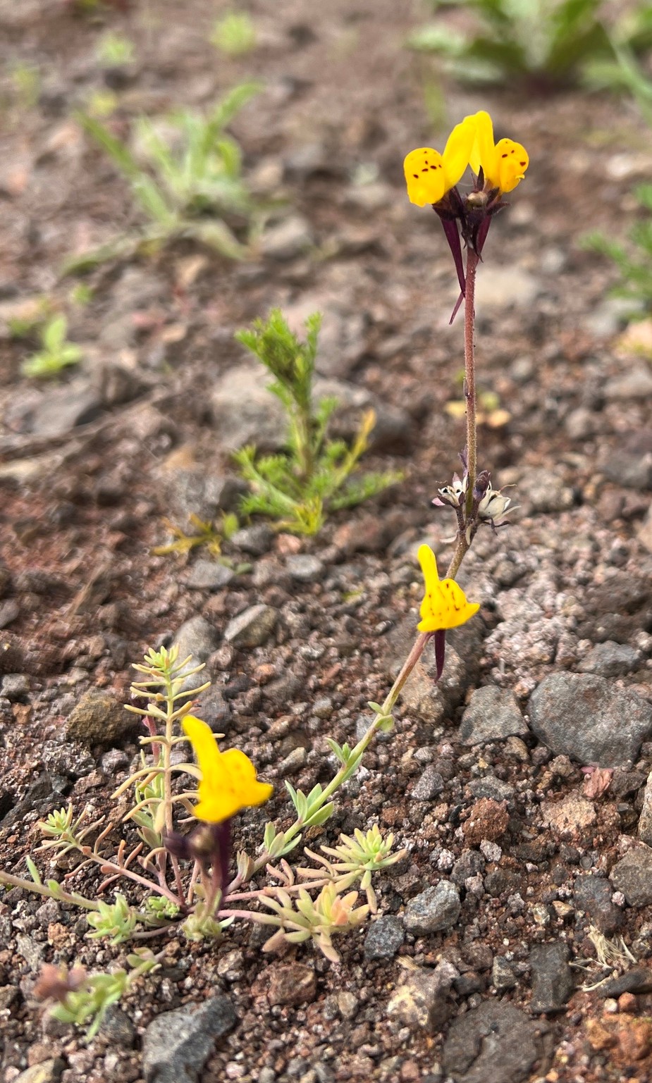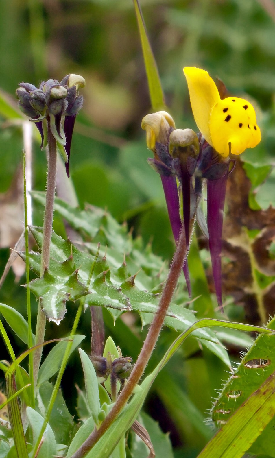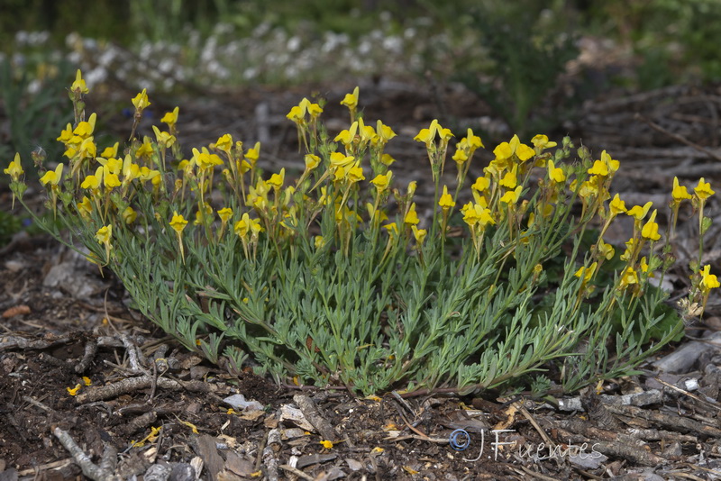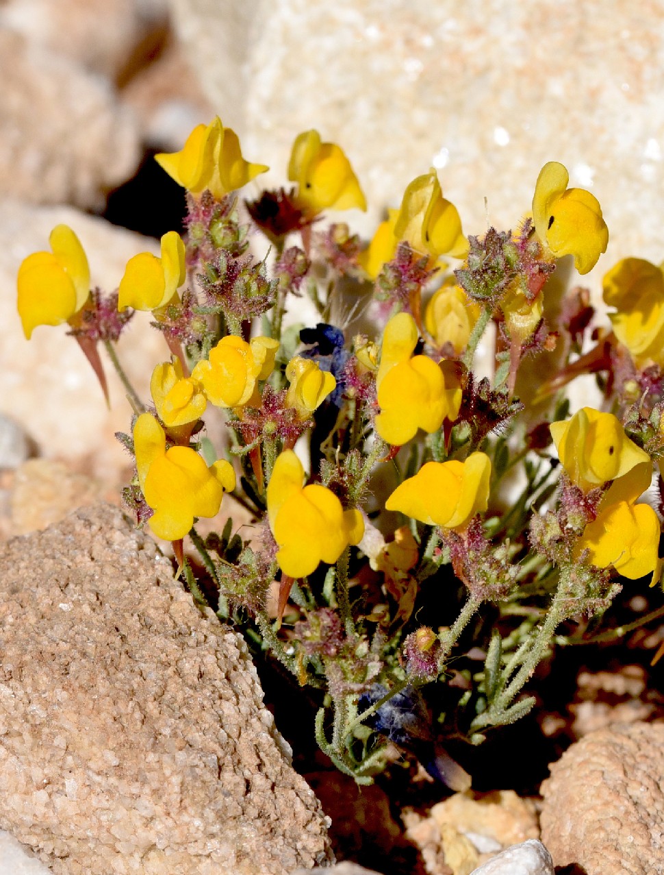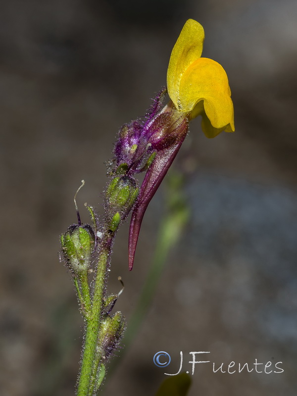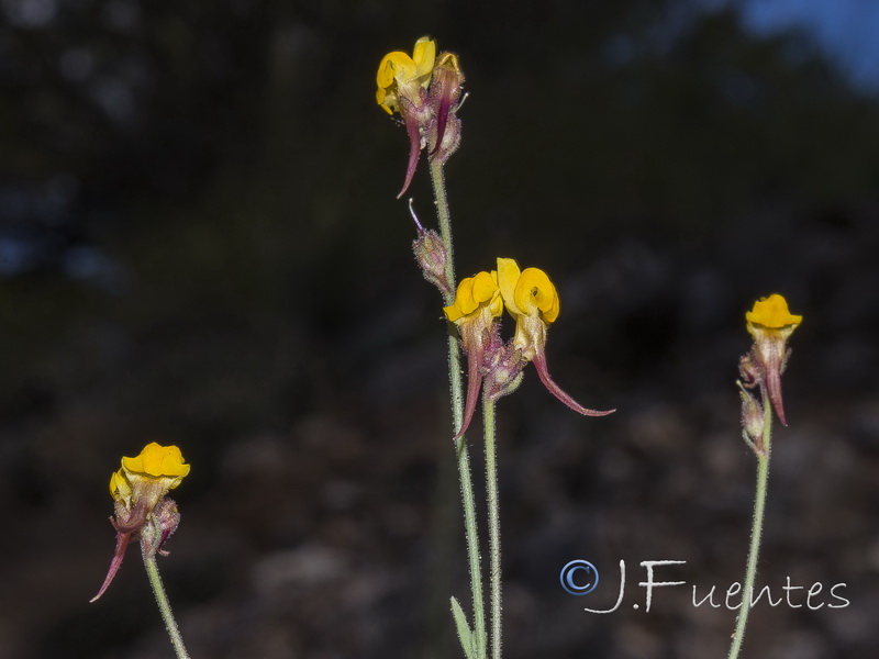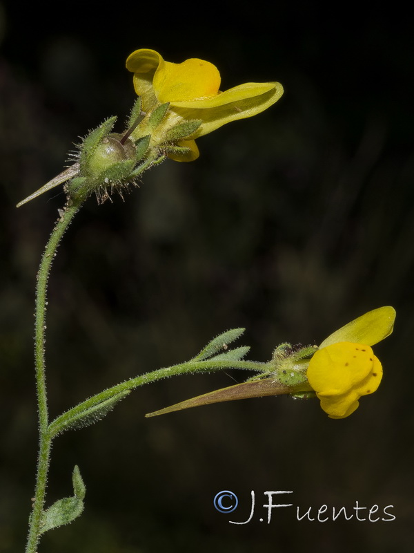 Linaria - Blüten überwiegend gelb, Sporn länger als der Rest der Blüte, Kelch, Stängel und Blätter drüsig behaart