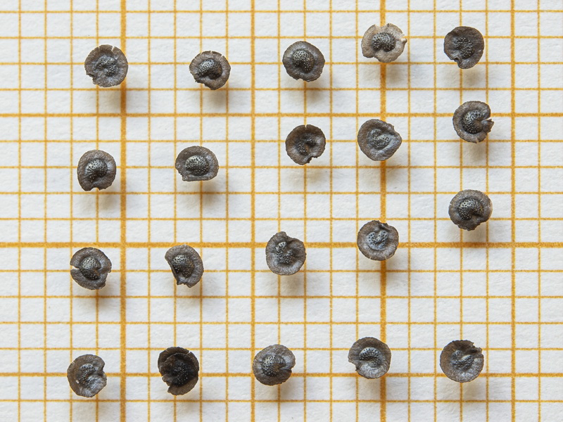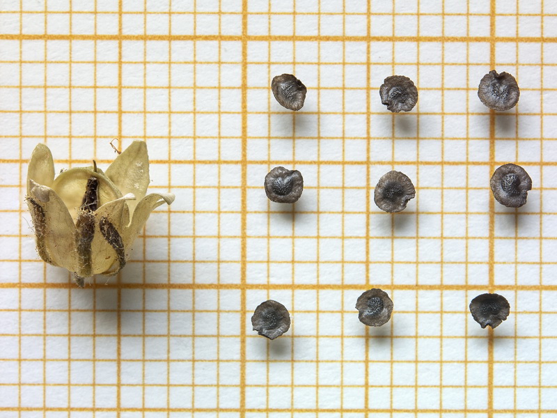 Samen geflügelt, 1 - 1,15 mm lang, Diskus rundlich oder nierenförmig, grau, oft mit Metallglanz, glatt oder warzig, Flügel 0,3 - 0,5 mm breit, grau