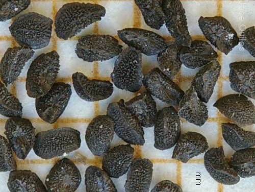 Samen geflügelt, 2 - 2,6 mm lang, Diskus nierenförmig, warzig,