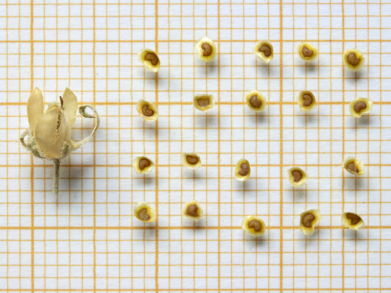 Kapsel kugelig, 4 - 7 mm im Durchmesser, drüsig behaart, von den Kelchblättern umgeben
